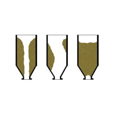 Pro jemné produkty s granulometrií v řádu mikro-a milimetrů používáme trysky Vibra-Disc s unikátní schopností směrovat proudění vzduchu podél vnitřní stěny nádoby, čímž efektivně uvolňují klenbu.